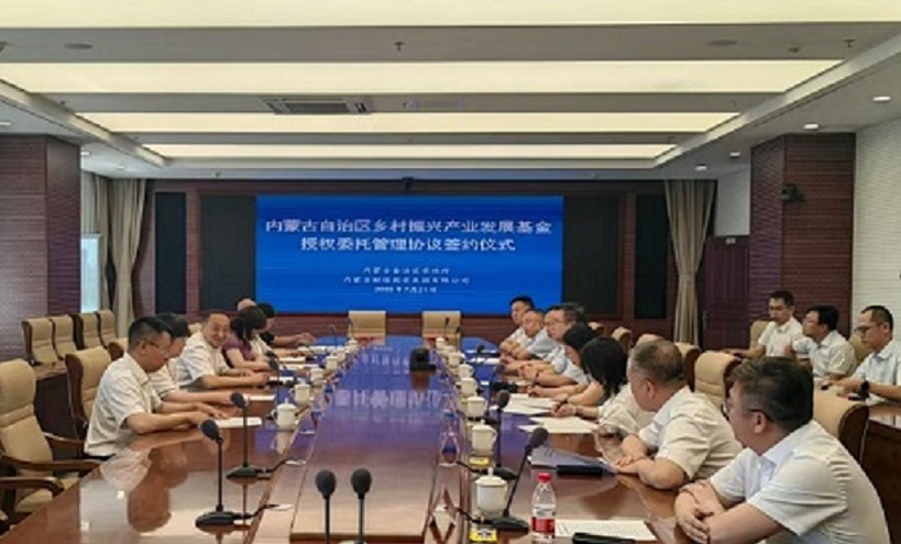 7月21日,財(cái)信集團(tuán)與自治區(qū)農(nóng)牧廳舉行鄉(xiāng)村振興產(chǎn)業(yè)發(fā)展基金授權(quán)委托管理協(xié)議簽約儀式,雙方領(lǐng)導(dǎo)共同在委托管理協(xié)議上簽約。基金管理人內(nèi)蒙古蒙新國創(chuàng)私募基金管理有限公司、托管銀行興業(yè)銀行呼和浩特分行等相關(guān)單位代表見證簽約。